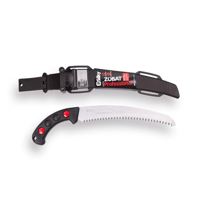 De Zübat Professional heeft een uit rubber gegoten handvat, dat comfortabel in de hand ligt en trillingen sterk reduceert. De zaag wordt geleverd in een draaibaar, zwart kunststof holster met afneembare riemhouder en is voorzien van 2 kleine rolletjes zodat de scherpe tanden de hoes niet beschadigen bij het in- en uitnemen van de zaag. Het holster heeft onderaan een opening, waardoor vocht en zaagsel uit de holster kunnen vallen.