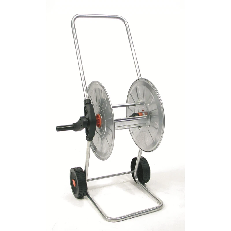 Deze verzinkte haspel is geschikt voor het opbergen van uw tuinslang. Deze haspel is voorzien van een stevige voet, zodat de haspel niet snel kantelt. Ook heeft hij twee wielen zodat u de haspel handig kunt verplaatsen. In het wiel van de haspel zit een snelkoppeling voor het aansluiten van de tuinslang. Aan de zijkant van het wiel zit een snelkoppeling voor het aansluiten van de tuinslang aan de kraan. Aan de ander zijkant zit een zwengel, zodat u de slang na gebruik makkelijk kunt oprollen.